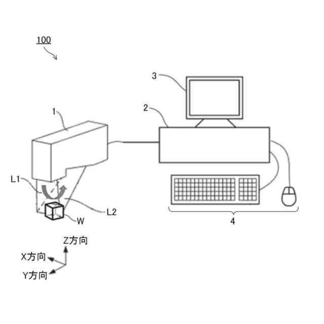 本発明は、X方向に延びるスリット光を、X方向に交差する方向に相対移動を行うワークに照射してワークの形状を測定する場合に、多重反射によるノイズを抑制するための新たな手法を提供することを目的とする。