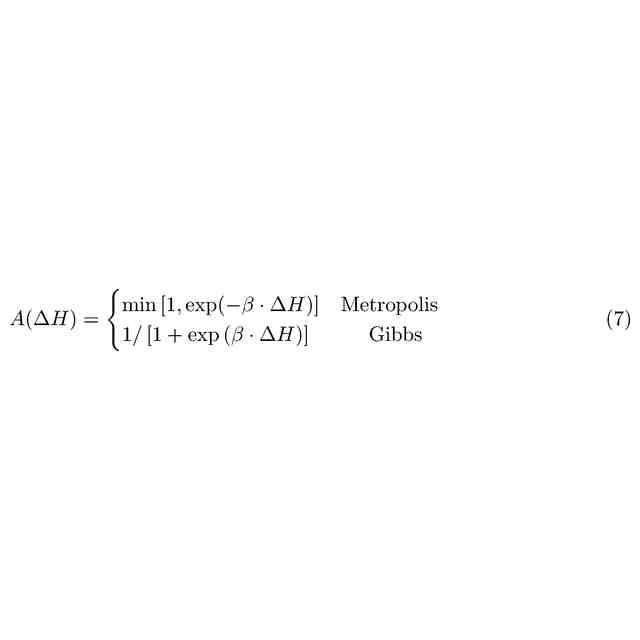 )(βは温度を表すパラメータの逆数)と表せる受け入れ確率でx