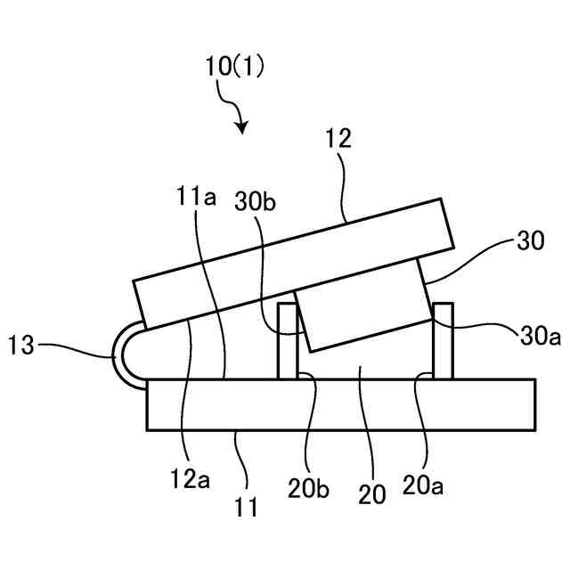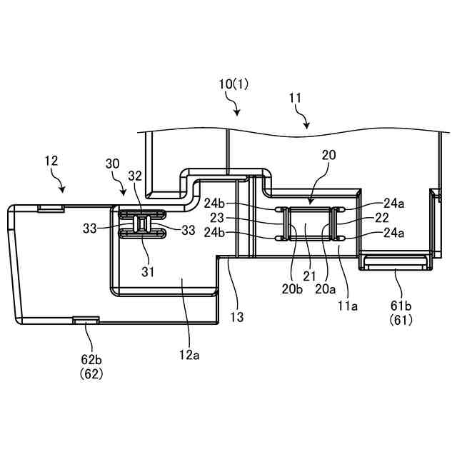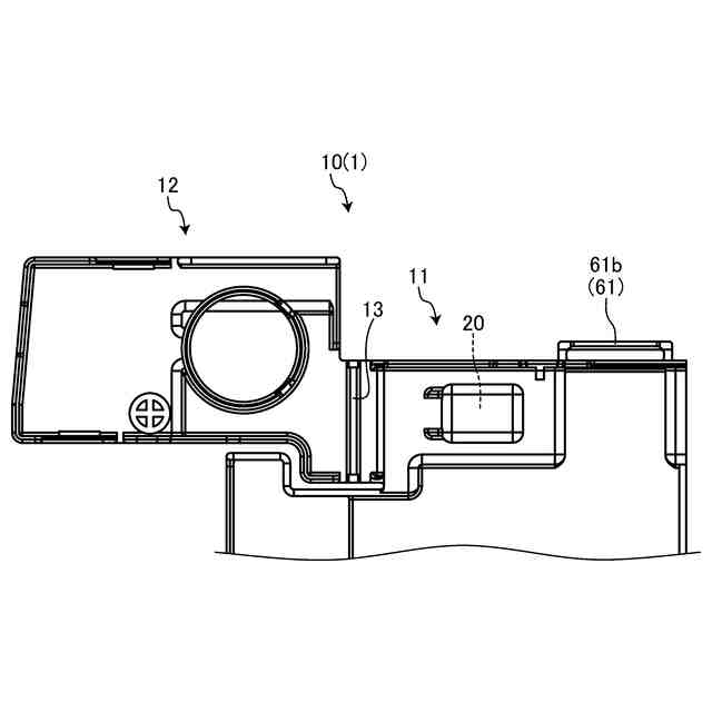 前記第1係止面は、前記凹部における前記リビングヒンジから最も離れた位置の第1壁面と、前記第1壁面と同一平面上の前記第1突出部の壁面と、で形成され、