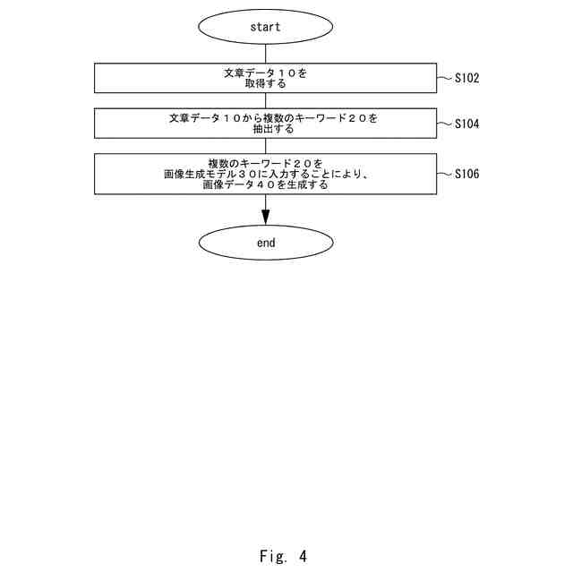 本開示に係るプログラムは、文章データを取得する取得ステップと、前記文章データから複数のキーワードを抽出する抽出ステップと、前記複数のキーワードを画像生成モデルに入力することで、前記文章データに関連する画像を生成する生成ステップと、をコンピュータに実行させる。