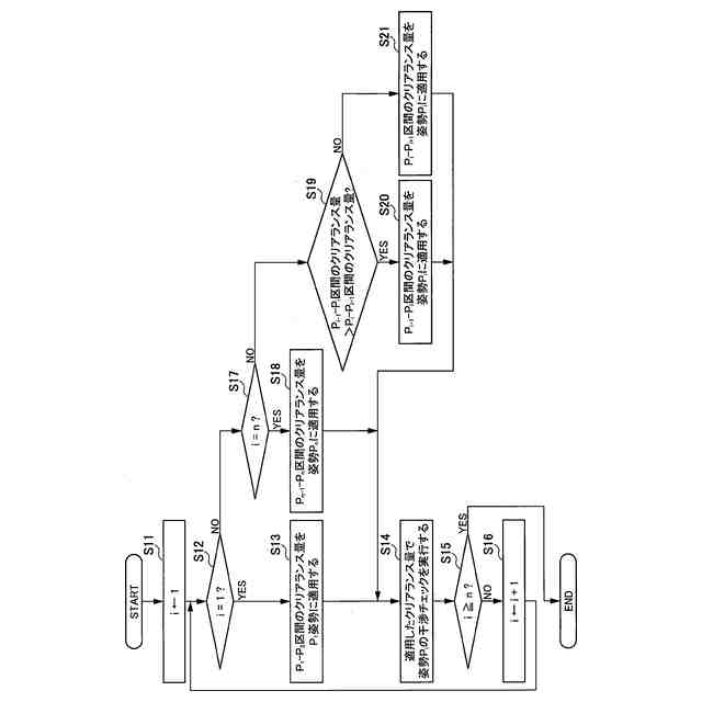 これに対して、経路を生成する区間ごとに異なるクリアランス量を設定できるようにした場合、姿勢が障害物と干渉していないことを確認するために、各区間に設定したクリアランス量を各姿勢にも適用して干渉チェックを行うことになる。このとき、各姿勢にどの区間のクリアランス量を適用するかによって、その後の経路生成で必ず干渉が発生する状況が生じる場合がある。