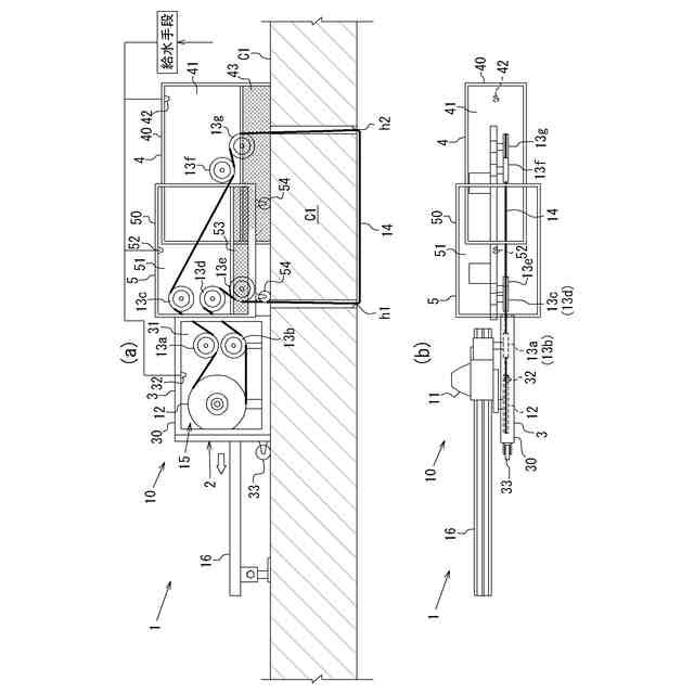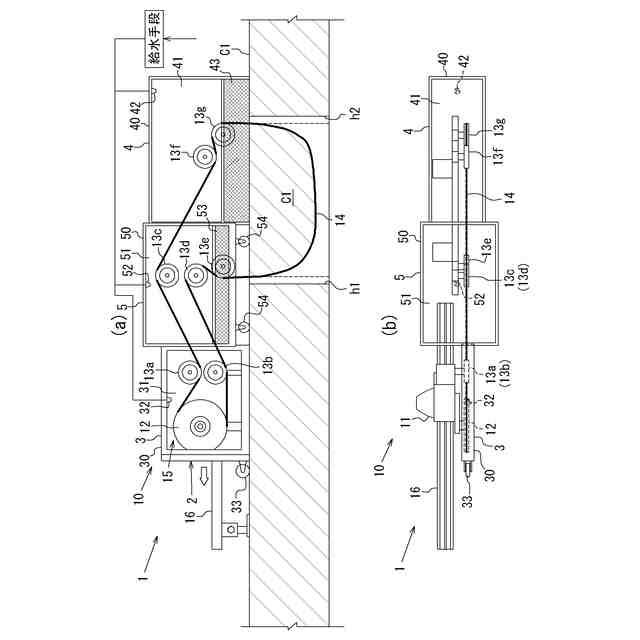 また、特許文献3には、ワークを加工するための加工室と、該加工室を覆うカバーと、該カバーの少なくとも一部に設けられた透明部とを備えるワイヤソー装置において、加工室の内部を目視するための透明部に傷が付くのを防止するために洗浄ユニットを設けて透明部の内表面に砥粒や切粉が付着する前に、透明部の内表面を流れる洗浄液によって砥粒や切粉を洗い流すワイヤソー装置が開示されている(特許文献3の特許請求の範囲の請求項1、明細書の段落[0025]~[0036]、図面の図1,図3,図4等参照)。