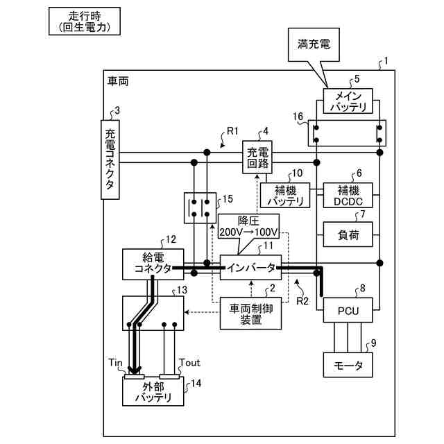 前記車両は、走行中に回生電力を発生させて前記メインバッテリを充電可能であり、