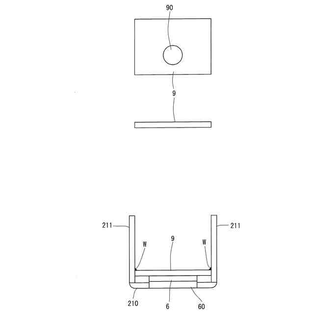 図9右図は、上下の取付片の従来例を示しており、上下の取付片は、見込壁210´の裏面に溶接したプレートから形成されている。より具体的には、上側取付片5´は、上側部位が見込壁210´の裏面に溶接されており、螺子孔50´を備えた下側部位が開口4´の上方部位で延びており、下側取付片6´は、下側部位が見込壁210´の裏面に溶接されており、螺子孔60´を備えた上側部位が開口4´の下方部位で延びている。しかしながら、このものでは、上側取付片5´、下側取付片6´を形成するプレートの溶接位置によって、螺子孔50´、60´の位置が決定されるため、螺子孔の位置出しが困難となるという課題があった。