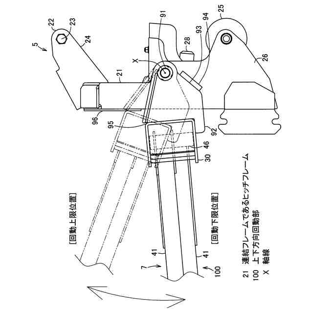 前記連結フレームに対して左右方向の軸線を中心として上下方向に回動可能な上下方向回動部とを備え、