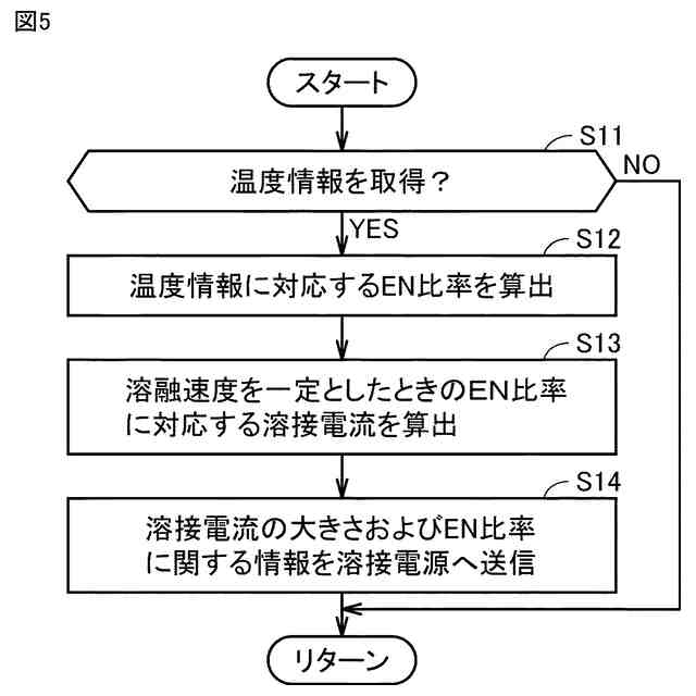 前記溶着ビードの温度と前記EN比率との関係を規定する第1対応関係と、前記溶接電流と前記消耗電極ワイヤの溶融速度との関係を前記EN比率毎に規定する第2対応関係とを記憶する記憶部をさらに備え、
