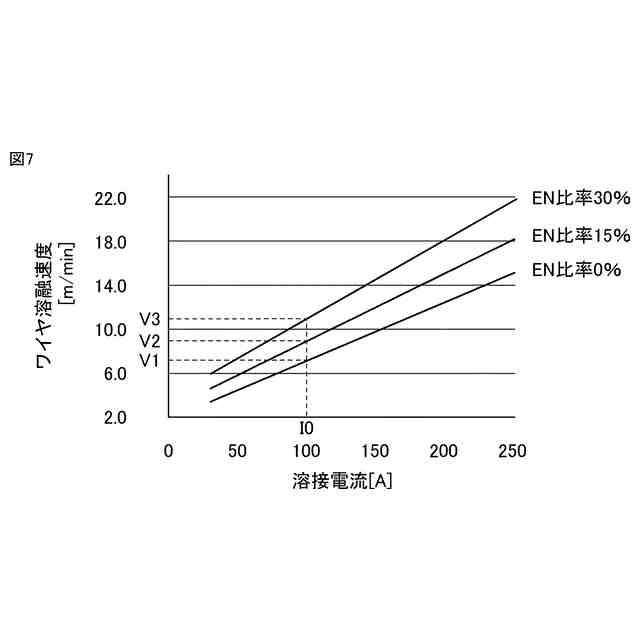 EN比率ごとの溶接電流とワイヤ溶融速度との関係の一例を説明するための図である。