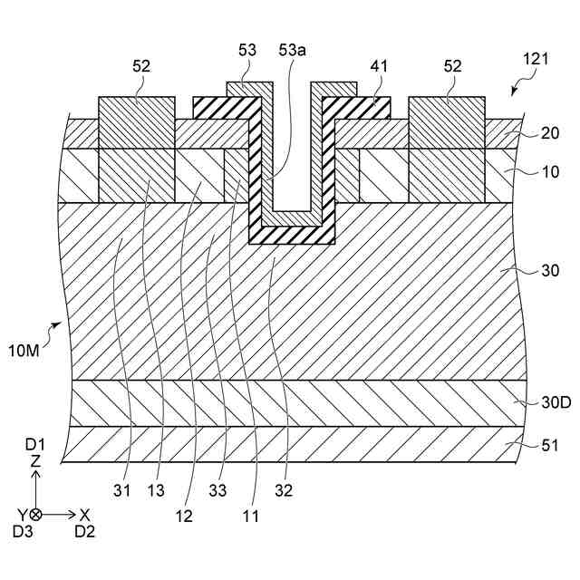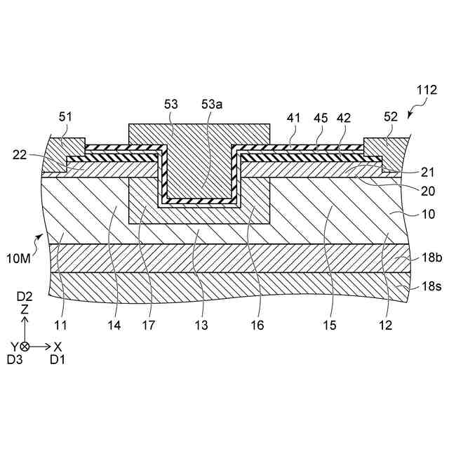 N(x1<x2≦1)を含む第2半導体領域であって、前記第2半導体領域は、第1半導体部分を含み、前記第5部分領域から前記第1半導体部分への方向は、前記第2方向に沿う、前記第2半導体領域と、