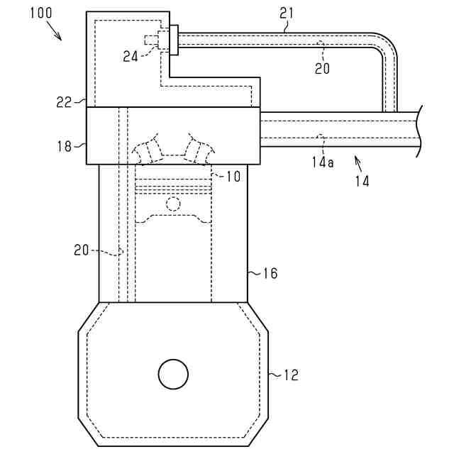 図1に示すように、水素エンジン100は、シリンダブロック16を有する。水素エンジン100は、シリンダブロック16の上端部に取り付けられたシリンダヘッド18を有する。水素エンジン100は、シリンダブロック16の下端部に取り付けられたクランクケース12を有する。また、シリンダヘッド18の上部は、ベンチレーションケース22によって覆われている。