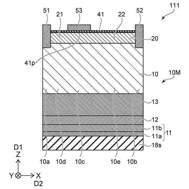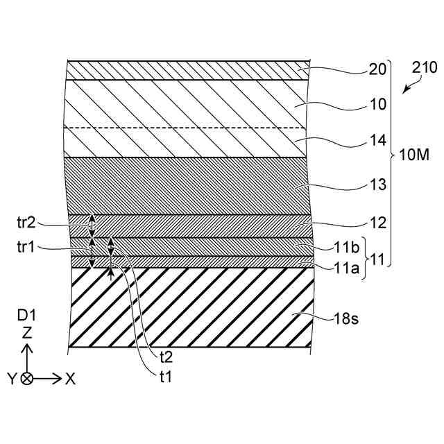 基体18sから第1層11への第1方向D1をZ軸方向とする。Z軸方向に対して垂直な1つの方向をX軸方向とする。Z軸方向及びX軸方向に対して垂直な方向をY軸方向とする。基体18s及び第1層11は、X-Y平面に沿う。