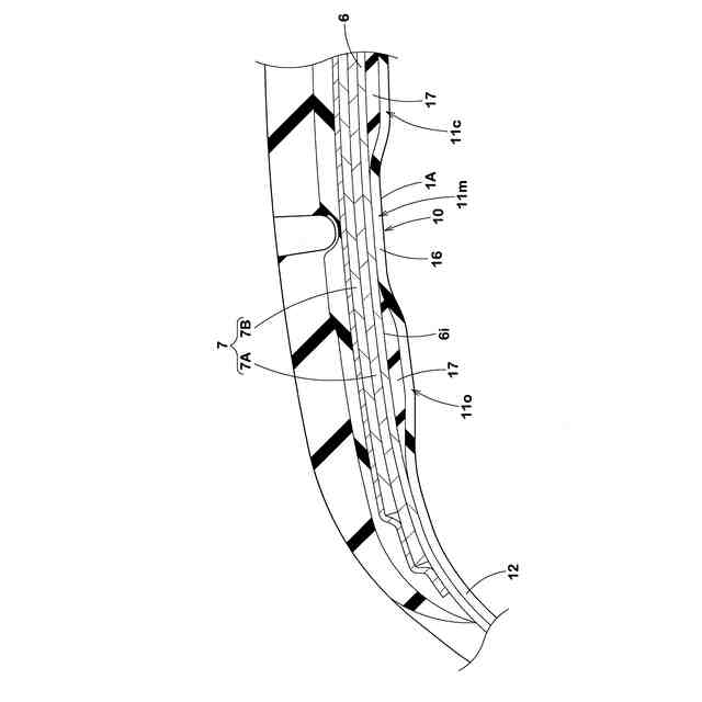 本発明のさらに別の実施形態のサイドウォール部の拡大断面図である。