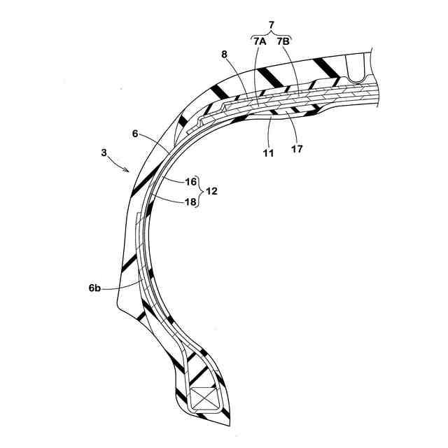 従来から、クラウン部にカーカスの外周面からインナーライナの内周面までの厚みが他部より厚い厚肉部が形成された空気入りタイヤが知られている(例えば、特許文献1参照)。