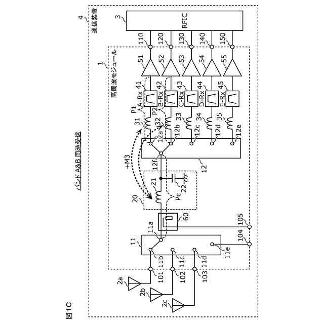 実施の形態に係る高周波モジュールおよび通信装置のダイバー回路使用時の回路構成図である。