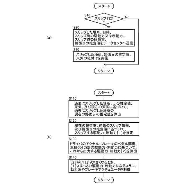 前記駆動輪の各々における輪荷重と、前記駆動輪の各々における車輪速と、車両の位置情報と、前記スリップが発生した場所と、前記スリップが発生した場所の路面摩擦係数の推定値と、走行している地域の天気情報と、を取得する取得部と、
