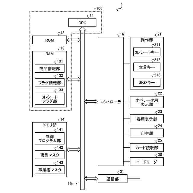 図15は、変形例のPOS端末の機能構成を示す機能ブロック図である。