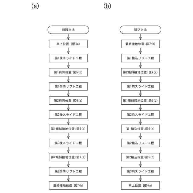 同実施形態に係る作業車両の作業フロー図(a:荷降作業フロー図、b:積込作業フロー図)