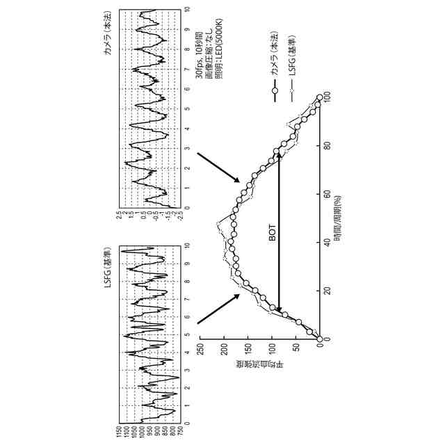 LSFGにより血流変化情報を抽出し組織血行動態指標を算出した場合と本発明の推定方法によって血流変化情報を抽出し組織血行動態指標を算出した場合との比較結果を示す図である。