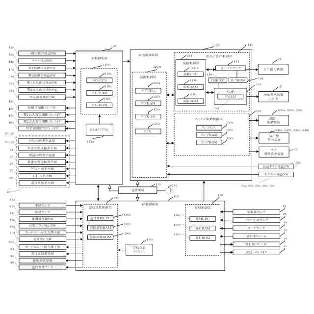 上記課題を解決するため、本発明は、第1遊技状態、第2遊技状態、遊技者に有利な特定遊技状態、大当り遊技状態、および、遊技の進行と停止を含む遊技状態の移行を制御する主制御手段と、遊技可能な遊技球数の減算および加算に関わる処理を行う枠制御手段と、を備え、前記主制御手段は、所定の遊技状態において普通電動役物を開放状態に制御可能で、開放中の前記普通電動役物への遊技球の入賞個数を計数し、当該入賞個数が所定条件を満たした場合、開放された前記普通電動役物を閉鎖可能とし、前記普通電動役物への遊技球の入賞に基づき普通電動役物入賞情報を生成可能であり、前記大当り遊技状態において大入賞口を開放状態に制御可能で、開放中の前記大入賞口への入賞個数を計数し、当該入賞個数が所定条件を満たした場合、前記大入賞口を閉鎖状態に制御可能とし、前記大入賞口への遊技球の入賞に基づき大入賞口入賞情報を生成可能であり、それぞれの開放時間とは異なる所定期間のそれぞれの入賞回数分の前記普通電動役物入賞情報と大入賞口入賞情報を前記枠制御手段へ所定期間ごとに送信可能であり、前記枠制御手段は、前記普通電動役物入賞情報および大入賞口入賞情報に基づいて、前記主制御手段における計数とは独立した計数処理を実行可能で、前記計数処理により計数された計数値を表示可能であることを特徴とする。