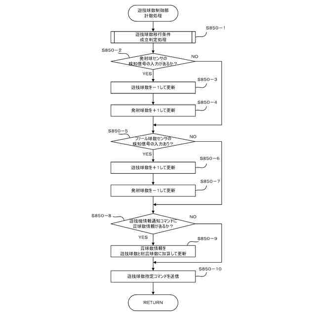第1~第6実施形態の遊技機1の遊技球数制御部180の計数処理のフローチャートである。