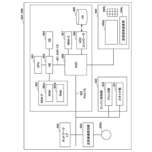 複合機又はファクシミリ装置のハードウェア構成図の一例である。