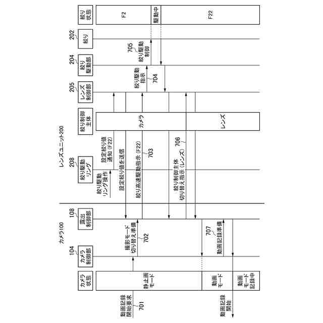 ここで、ユーザは、静止画撮影モードに設定されている状態で動画記録ボタンを押下して動画記録を開始することがある。この場合、静止画撮影モードから動画撮影モードへ移行する必要があり、その際に絞りの制御主体を撮像装置からレンズ装置へ切り替えるために撮像装置とレンズ装置との間で通信を行う必要が生じる。その結果、動画記録ボタンの押下から動画記録開始までにタイムラグが生じる。