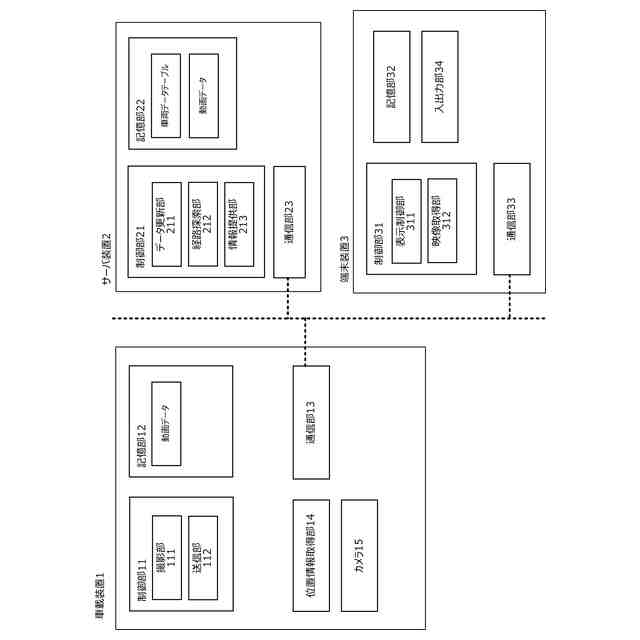 前記制御部は、前記第1の車両から、前記第1の車両によって撮影された車載映像と、前記第1の車両の位置情報を受信し、双方を関連付けて記憶する、