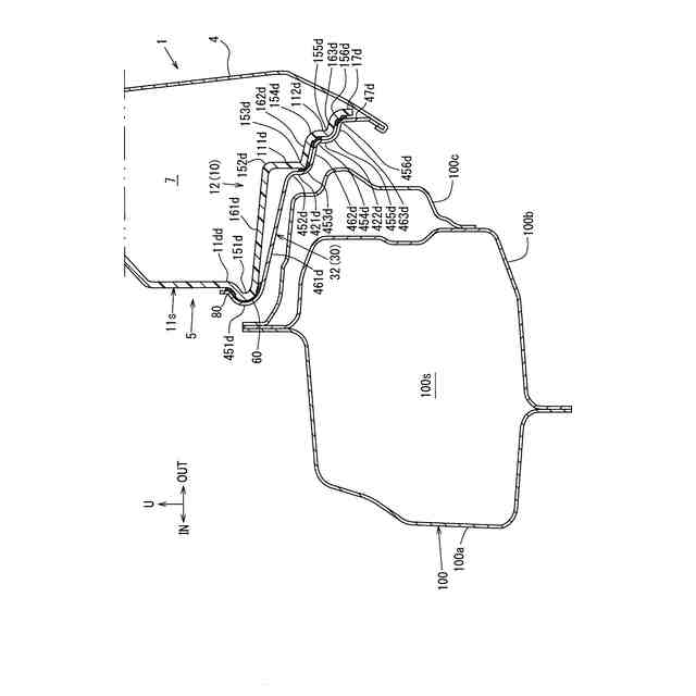 前記内面部、前記稜線部および前記壁部のうち、前記稜線部および、その周辺領域のみに前記接着剤を備えた