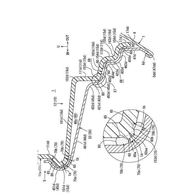 前記突起部の前記突出方向に沿う断面において、前記突起部の前記突出方向の先端側に、前記補強部材と対向する突起部頂面が設けられ、