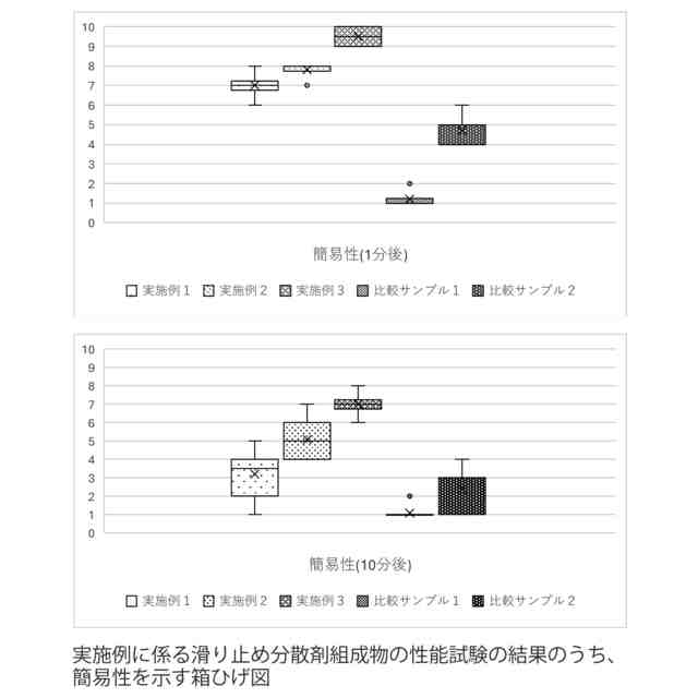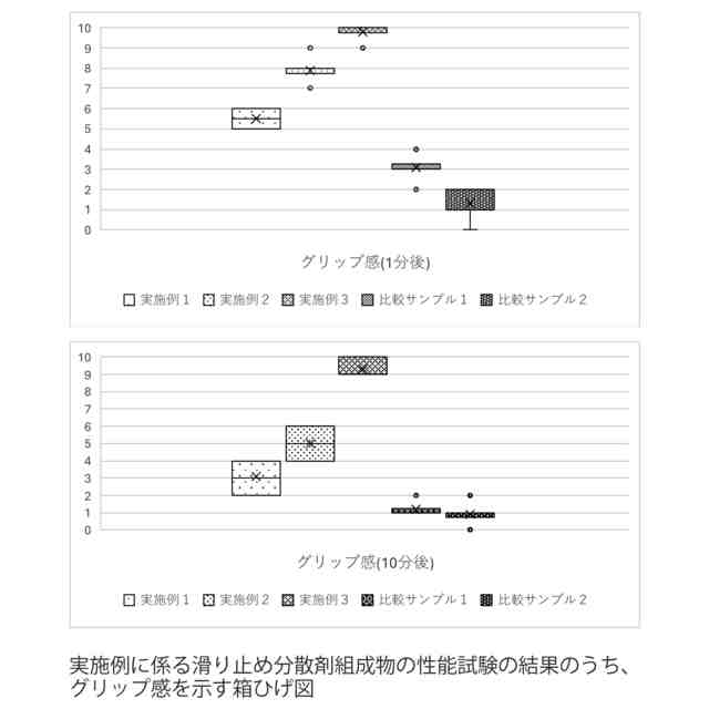 ところで、近年、液体タイプの滑り止めチョークの使用が広がっている。液体タイプの滑り止めチョークは、上述の炭酸マグネシウム等をアルコール等の有機分散媒に分散させたものである。液体タイプの滑り止めチョークは、手のシワの奥まで炭酸マグネシウムがなじみつつ、アルコール等の有機分散媒が手の脂分を除去する効果を有する。また、有機分散媒の種類に応じ、蒸発の際の吸熱作用により、手のひらの熱を吸収することもあるため、長時間にわたって、摩擦力を発揮することもできる。