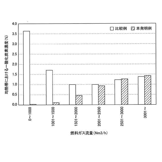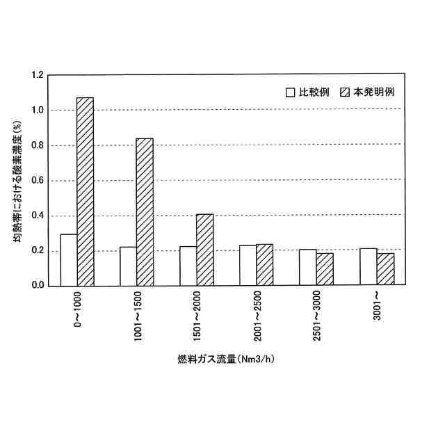 即ち、燃料ガス流量の変化により、炉内の酸素濃度計とバーナーフレームとの間の距離や、外気の侵入量等が変化し、炉内における燃焼排ガス中の酸素濃度の測定状況は変化する。しかし、特許文献1に示す連続式加熱炉の操業方法では、燃料ガス流量によらず、目標酸素濃度を予め設定された同一の酸素濃度として燃焼空気流量の制御を行うため、燃焼バーナーに供給される燃料ガス流量によっては燃焼空気が不足して未燃ガス成分、すなわち一酸化炭素の濃度が上昇し、燃焼の安全性に難があるという課題があった。