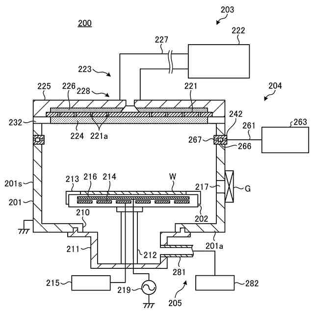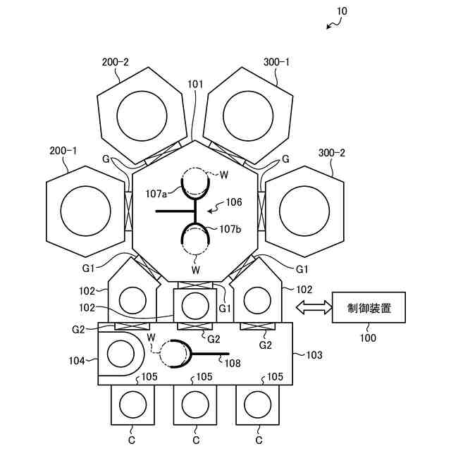 例えば下記特許文献1には、「プロセスコントローラ23は、第2の熱処理モジュール13dを制御し、ウエハWに対して第3の熱処理を実行する(S105)。具体的には、プロセスコントローラ23は、第2の熱処理モジュール13dのバタフライバルブ42および真空ポンプ43を制御して、チャンバ26内を所定の真空度まで減圧させる。そして、プロセスコントローラ23は、第2のガス供給源28bからのアルゴンガス、および、第3のガス供給源28cからの酸素ガスを、それぞれ所定の流量でシャワープレート38を介してチャンバ26内に供給する。そして、プロセスコントローラ23は、ヒータ電源37を制御して、ウエハWの温度を所定の温度に設定する。これにより、例えば図4(d)に示すように、金属触媒51の表面に付着した余分な炭素が除去される。」ことが開示されている。