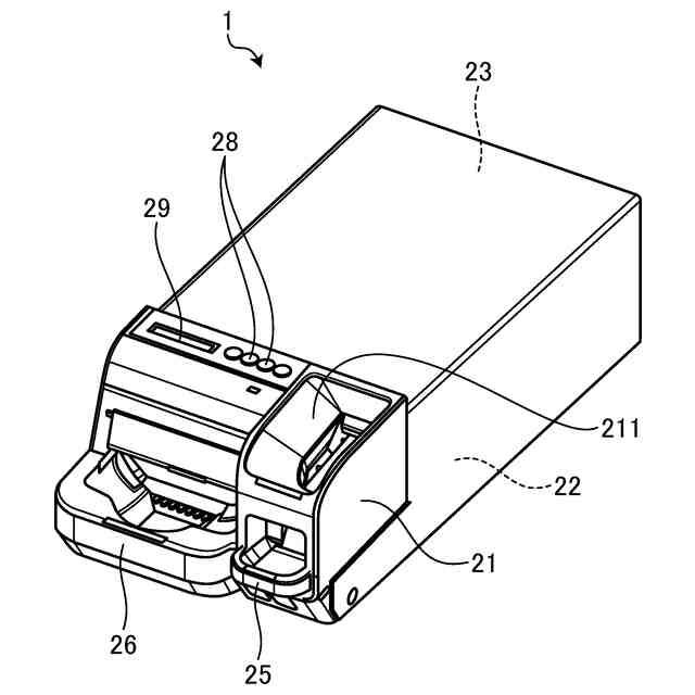 従来、硬貨入出金装置や紙幣入出金装置などの入出金装置が、使用されている。これらの入出金装置は、販売データ処理装置とともに使用されたり、セルフチェックアウト装置に組み込んで使用されたりしている。