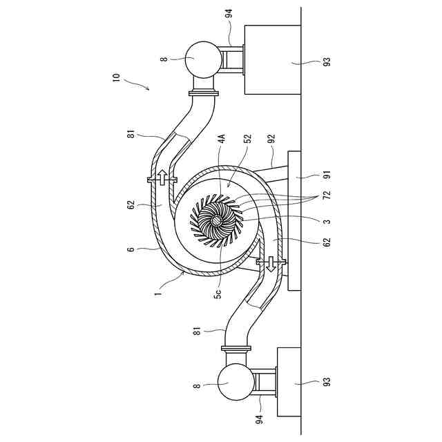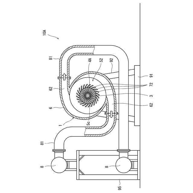 前記ロータは、回転軸と、前記回転軸に取り付けられた3つの前段羽根車および2つの後段羽根車を含む。前記ダイヤフラムは、前記複数の前段羽根車の上流側の吸入室、前記複数の前段羽根車の下流側の中間流出室、前記複数の後段羽根車の上流側の中間流入室、および前記複数の後段羽根車の下流側の吐出室を含む。前記ケーシングは、前記中間流出室と連通する中間流出口と、前記中間流入室と連通する中間流入口を含む。特許文献1では、中間流出室および中間流出口がまとめて「吐出流路」と呼ばれ、中間流入室および中間流入口がまとめて「吸込み流路」と呼ばれている。