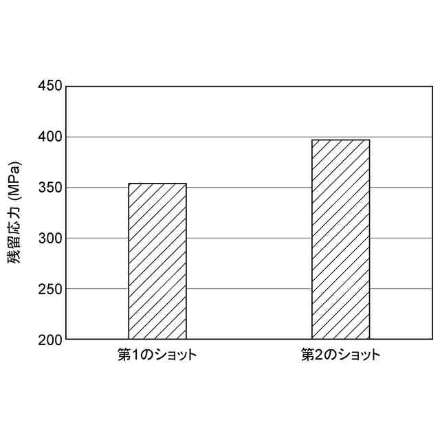 図4は、第1のショット及び第2のショットを用いて付与された残留応力を示すグラフである。