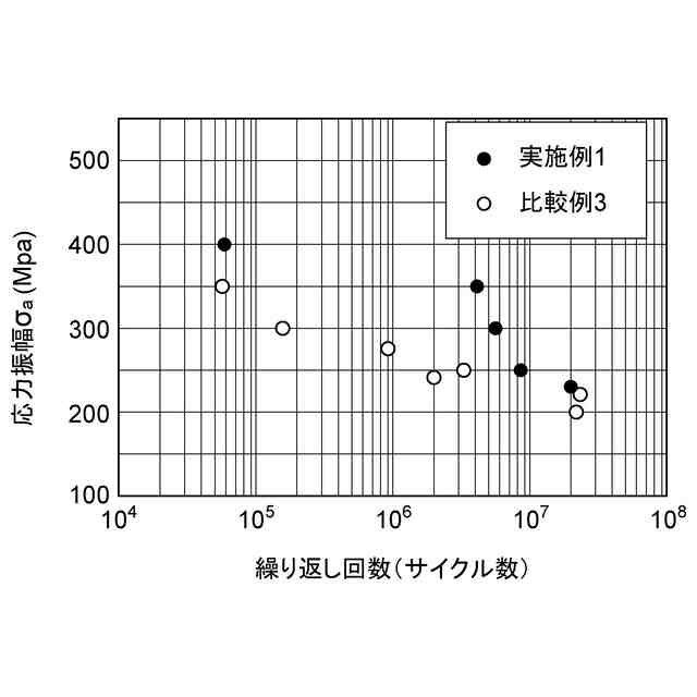 図7は、実施例及び比較例における、アルミニウム合金部材の応力振幅と繰り返し回数との関係を示すグラフである。