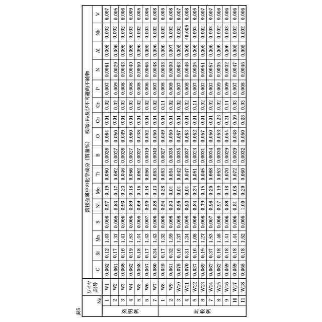 また、特許文献2には、溶接のまま(AW:As Welded)及び溶接後熱処理(PWHT:Post Weld Heat Treatment)後の強度及び低温靱性に優れた溶接金属を得るうえで好適なフラックス入りワイヤが開示されている。上記特許文献2には、V及びNbの含有量を少なくすることによりPWHT後の低温靱性を更に向上させることができることが記載されている。また、C、Si、Mn、Ni、B、Ti、Al、MgとTi酸化物の含有量を適量とすることによって、AW及びPWHT後の強度及び低温靱性に優れた溶接金属が安定して得られることも記載されている。