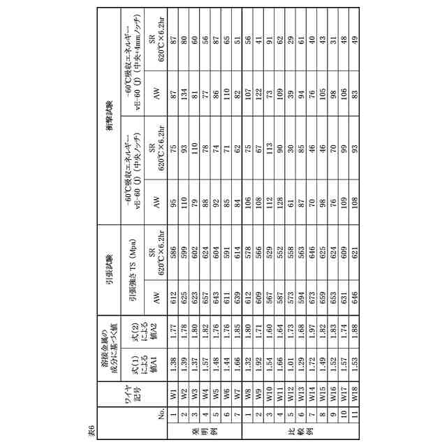 さらに、特許文献3には、SR後の優れた引張強さを有し、また溶接金属内の位置にかかわらず、優れた低温靱性を有する溶接金属が開示されている。上記特許文献3には、溶接金属が適切な含有量でCuを含有していると、SR後の靱性を向上させることができることが記載されている。また、溶接金属中のSi、Mn、Cr及びMoの含有量を用いた所定の式により得られる値を適切に制御することにより、測定位置によって靱性が低い値となることを抑制することができることが記載されている。