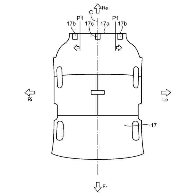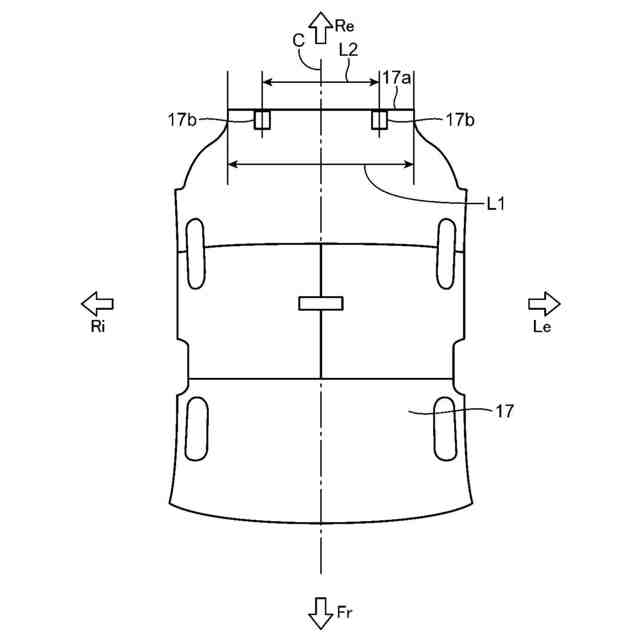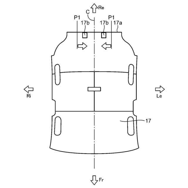 ロードノイズ発生時の周波数域でのリアヘッダの振動モードにおける変形の腹の位置は、リアヘッダの変位が最大となる。そして、リアヘッダにおける腹の位置およびその周辺部の領域は、変位が局所的に大きい領域になっている。そのようなリアヘッダにおける変位が大きい領域は、トップシーリングの中心線との車幅方向寸法がそれぞれ等しい位置であって、トップシーリングの後端の車幅方向の幅に対して37~78%の距離だけ離間した2点の位置が存在する領域にあることが本発明者らの研究で解明されている。
