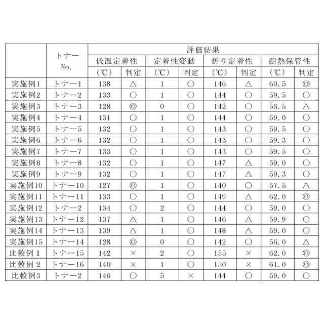 しかしながら、特許文献1のトナーの製造工程では、所望の粒子径および所定の円形度にするため、融点以上に加熱され、コア樹脂と相溶した状態で製造される。コア樹脂と相溶した状態で出来上がったトナーが高温高湿下に保管されると、コアと結晶物質との非相溶化に伴い低温定着性が悪化することがある。また、結晶性樹脂を含んでいない非晶性樹脂のみで構成されたトナーにおいても、ガラス転移温度以下の温度で保管しても低温定着性が徐々に悪化することが知られている。このように、トナーの低温定着性については、検討の余地が残されている。