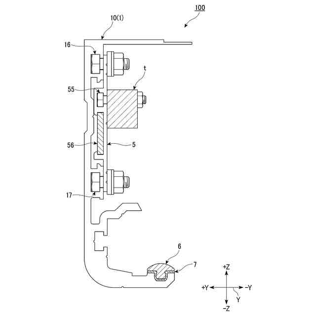 台板部のうち接続板が設けられている箇所において左右方向と垂直な面で切断したときの断面を示す断面図である。