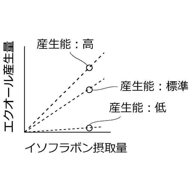図3は、イソフラボンの摂取量とエクオールの産生量との関係を説明するための図である。