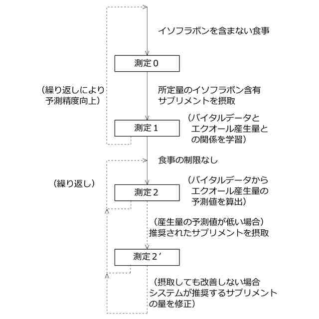 イソフラボンから産生されるエクオールの産生能は、腸内環境に依存し、個人によって大きく異なる。しかしながら、エクオールやイソフラボンのサプリメントには、一律の摂取量が記載されることが一般的であり、個別のユーザに適量を提案することは困難であった。本開示は、個別のユーザのエクオール摂取量を改善するための技術を提供することを目的とする。