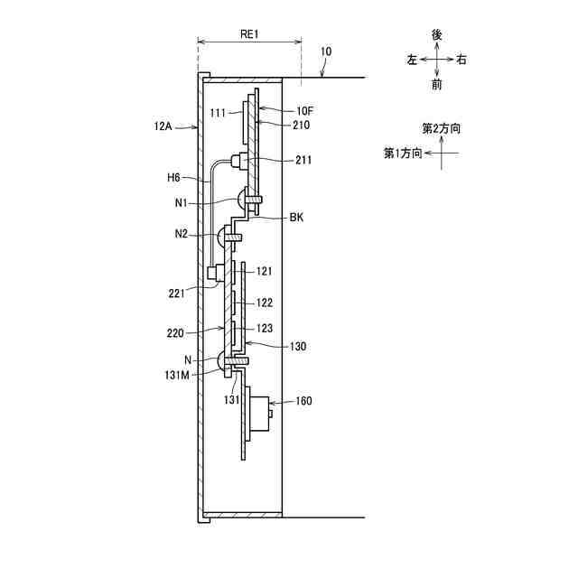 サブ基板と第1端との距離は、メイン基板と第1端との距離よりも小さく、かつ、板金と第1端との距離よりも小さい。