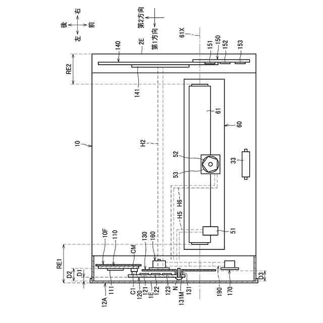 本体筐体は、第1方向において第1領域に近い第1端と、第1方向において第1端よりも第1領域から離れた第2端とを有する。