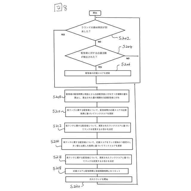 特許文献1には、ライブ動画の配信者への報酬を時間給で支払う仕組みが開示されている。特許文献1では、配信者をランク付けし、ランク帯内の配信ポイントの順位にしたがってランクメータ値を変動させ、配信者のランクメータ値に基づいて配信者のランクを更新する。時間給なので、初心者の配信者であっても、ライブ動画の配信を継続することによって、配信時間と基準報酬数量とに基づく数量の報酬を得ることができる。