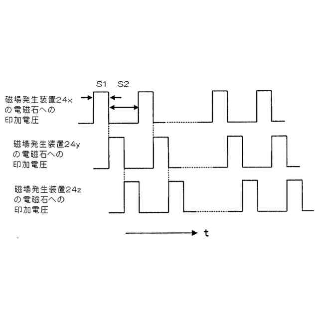 ハイレベル期間と前記ハイレベル期間よりも長いローレベル期間とを有するパルス電圧を、各磁場発生装置における1つのグループの電磁石にそれぞれに同時に印加することと、
