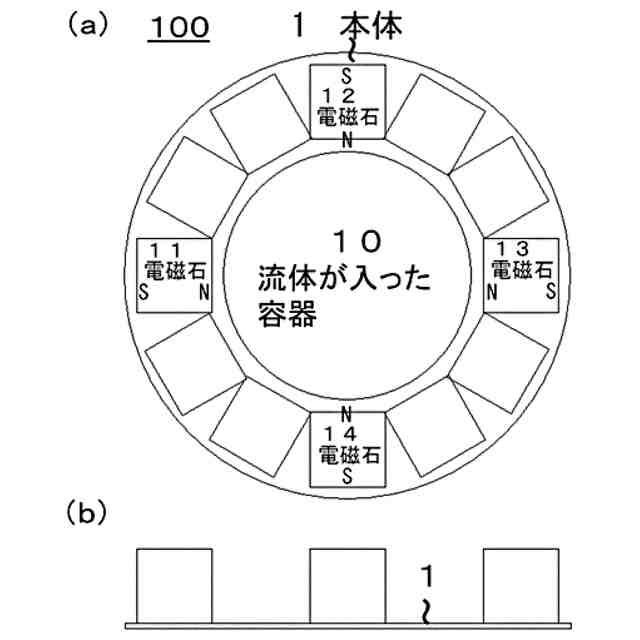 n個の前記磁場発生装置は、前記流体が通る配管に前記配管に沿って所定の間隔を隔てて設置されており、n個の前記磁場発生装置の各々が中心部に前記配管を貫通させるための空洞部を有する円盤状の本体と、前記本体に設けられた少なくとも2個の電磁石とを具備しており、