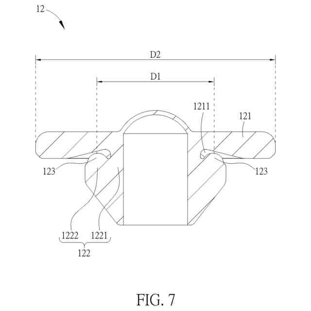 本発明の実施形態によれば、複数の突起は、第1直径を有する円の中に配置され、上側部分の外周は、第2直径を有し、第2直径は第1直径よりも大きい。