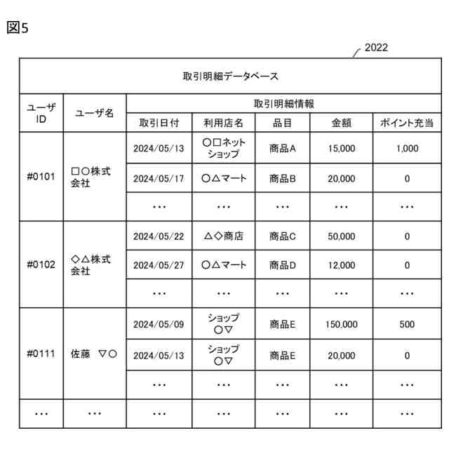図3の取引明細データベース2022のデータ構造の例を示す図である。