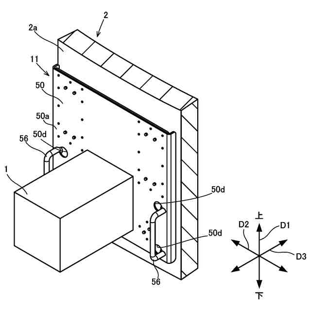 以下、本発明の実施の形態に係る吸着台座について図面を参照しつつ説明する。図1は、本発明の一実施形態に係る吸着台座の使用例を示す斜視図である。なお、図1には、互いに直交する第1方向D1、第2方向D2および第3方向D3を示している。後述する各図においても、第1方向D1、第2方向D2および第3方向D3を適宜示している。本実施形態では、第1方向D1が、吸着台座11を使用する際の上下方向に対応する。